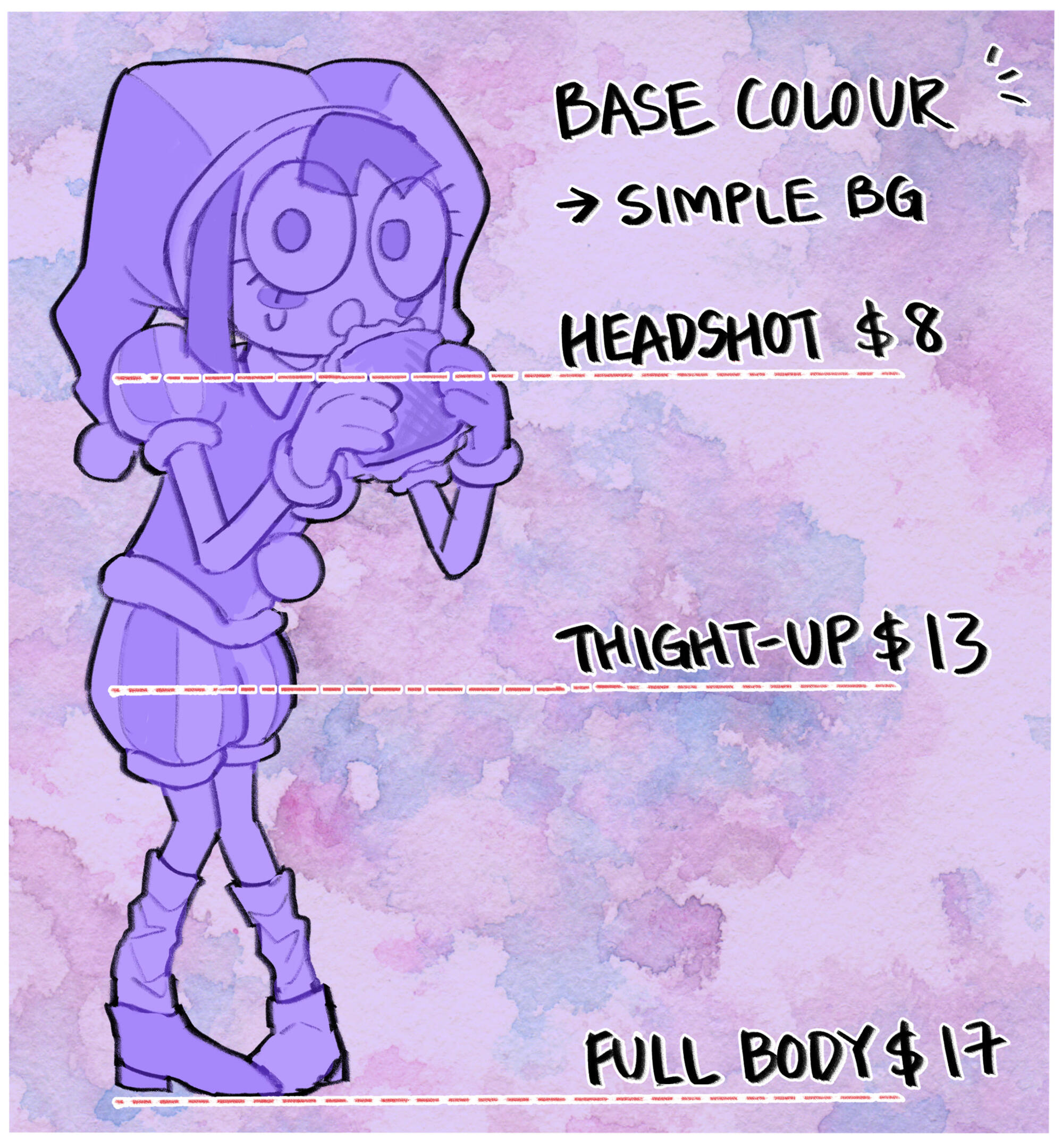▼General⋆ All of the works are for personal use only. No commercial merchandising.⋆ Usage of tracing, reselling, and AI learning on the artwork is strictly prohibited.⋆ Minors must obtain permission from their parents or legal guardians before requesting.⋆ I have the right to publish the finished works publicly with watermark. Inform beforehand if you wish to be credited, otherwise your identity will be anonymous.⋆ ACCEPT: OC, fanart, yumeship/selfship, gore, suggestive.⋆ REJECT: NSFW, furry, mecha, armor, middle-aged/elderly characters, complex backgrounds, sensitive content involving politics & religions.⋆ All services are sketch-based, slight color bleeding and smudging may occur.▼Additional Fees & Payment⋆ Complex character design +MYR 10 // USD 2⋆ The first two revisions are free, fees will be applied according to each additional revision.⋆ All commissions must be paid in full upfront after I accept the request.▼Communication⋆ Contact via Twitter dm or Email.